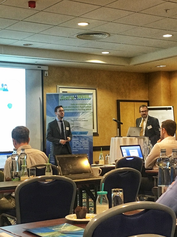 On 25th of January 2018, the Safe4RAIL consortium met together with interested attendees among others from the railway domain as well as suppliers and manufacturers, safety experts and authorities of train control and communication systems at Safe4RAIL's Mid-Term Conference in Prague (CZ). In sum: WHAT A SUCCESS! An audience consisting of more than 70 participants got the main achievements and successful progress presented, which Safe4RAIL made during the 1st project year. The conference, organized by our project partner UniControls, was dedicated towards the concept for the Integrated Modular Platform, consisting of middleware and networking framework. Besides that, further presentations were held in terms of simulation and demonstration aspects. The conference was perfectly concluded by the last slot of the day, respectively the panel discussion, which led into deeper and more technical talks and thoughts, revealing interesting paths for the future.